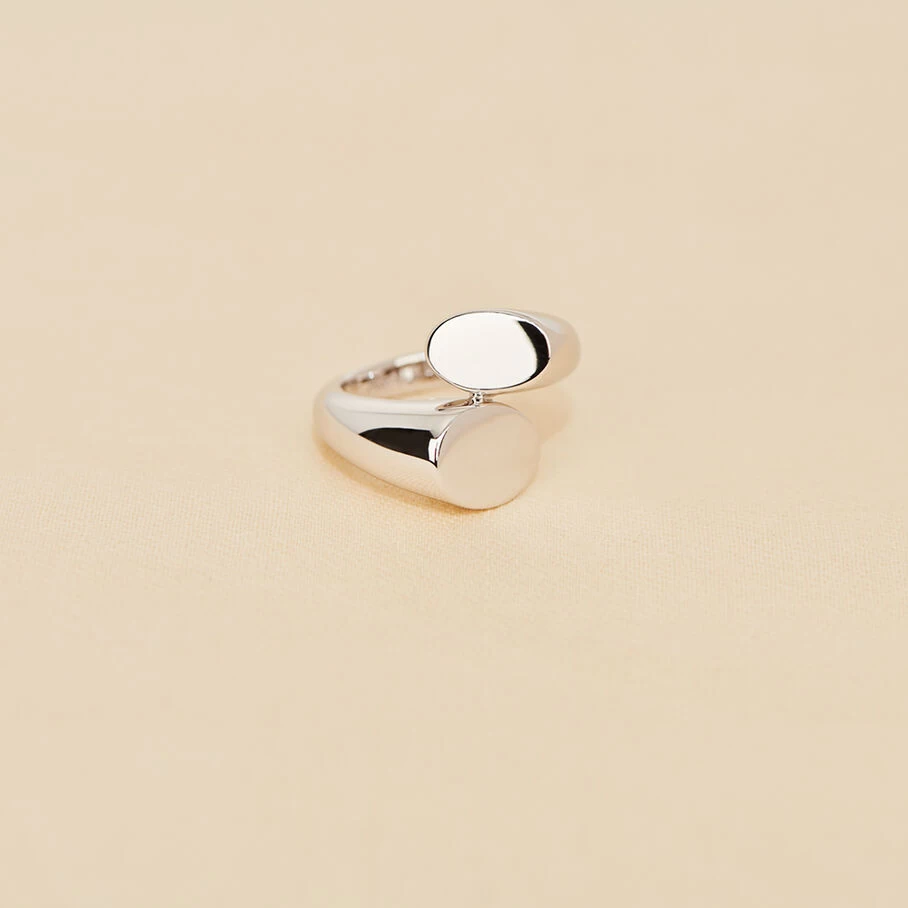 Bague toi& moi, en argent véritable, avec des extrémités planes. Un design qui donnera du volume à vos mains !