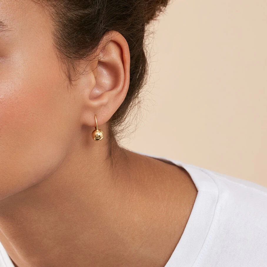 Boucles d’oreilles dormeuses boule de 8mm de diamètre, en argent véritable doré à l’or fin