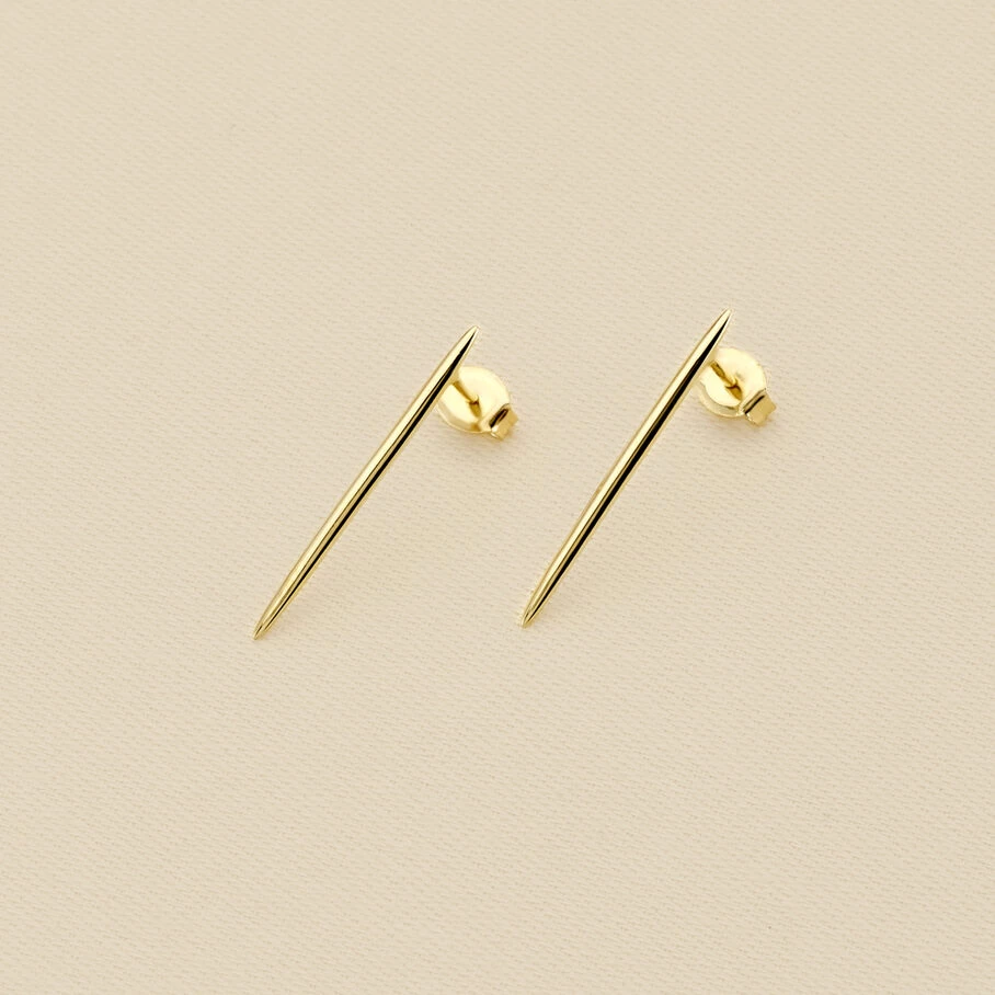 Boucles d’oreilles linéaires, en argent véritable 925/1000 et dorées 750/1000, au motif rayon de soleil.