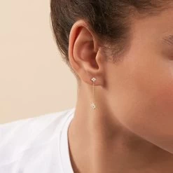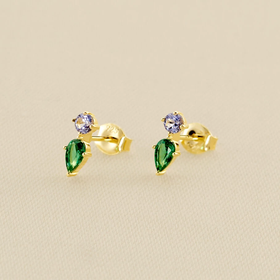 Boucles d’oreilles puces, en argent véritable doré 750/1000, avec des oxydes de zirconium de forme ronde et goutte