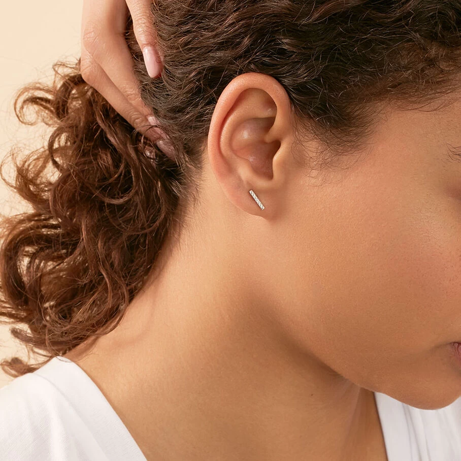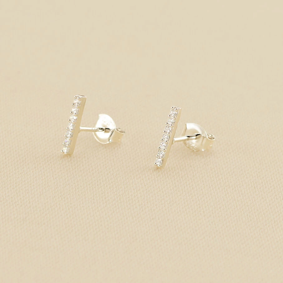 Boucles d’oreilles puces en argent véritable formées de petites barres pavées d’oxydes de zirconium