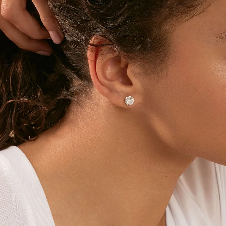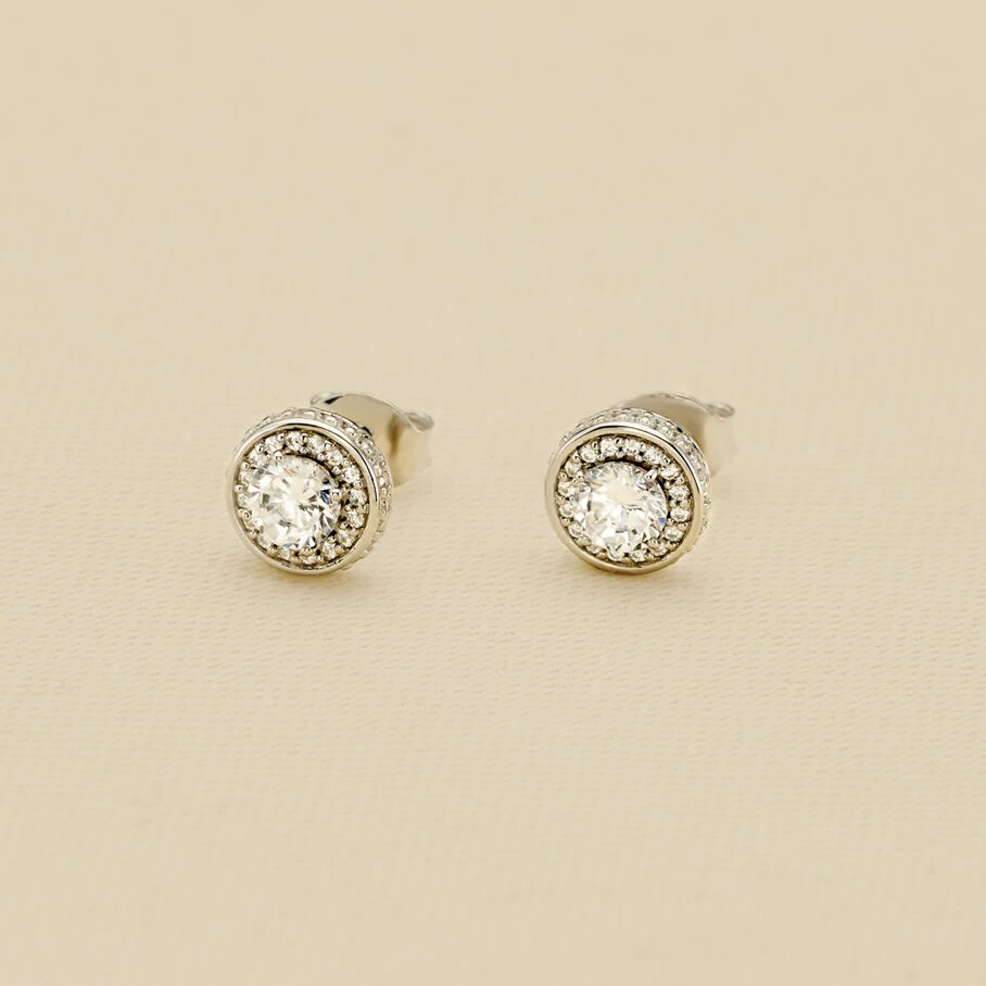 Boucles d’oreilles puces, en argent véritable, avec un mini oxyde rond autour duquel sont micro sertis des oxydes de zirconium