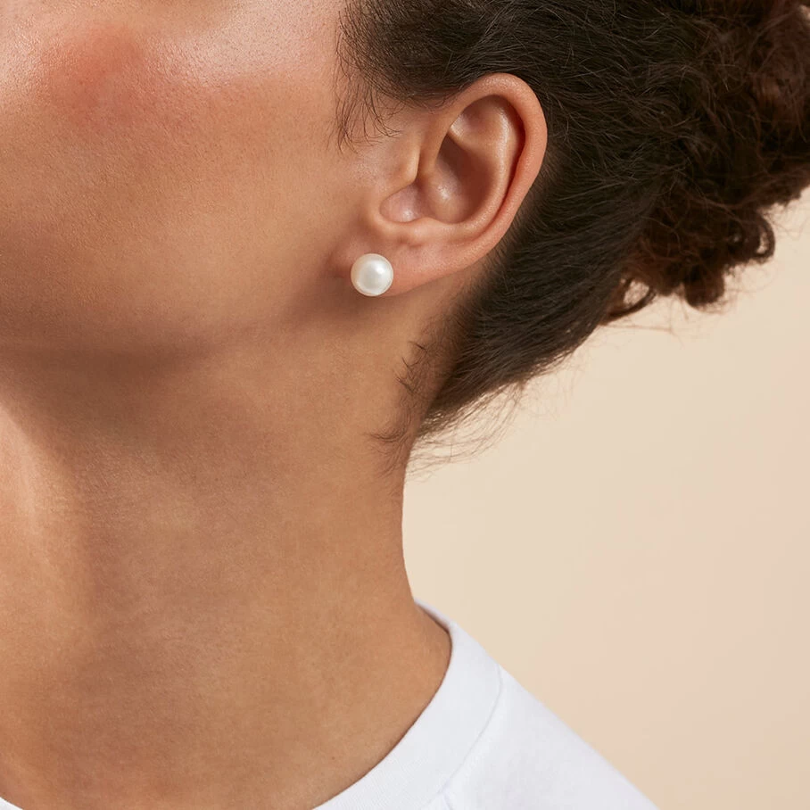 Boucles d’oreilles puces en argent véritable ornées de perles de verre de 10 mm de diamètre