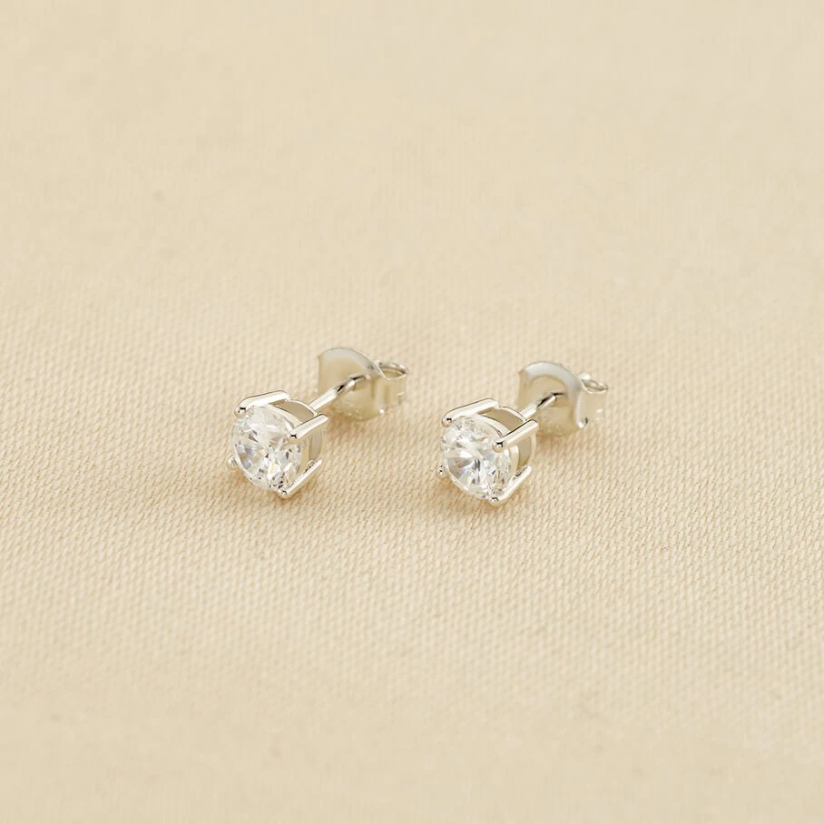 Boucles d’oreilles puces en argent véritable ornée d’oxydes de zirconium griffés de 5 mm