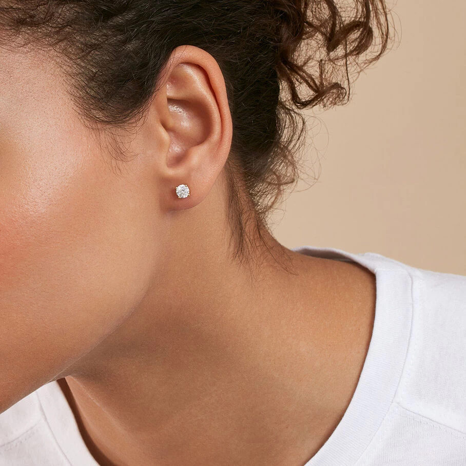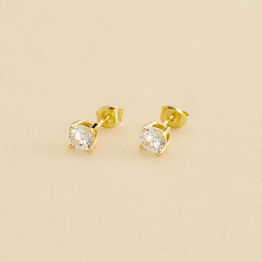 Boucles d’oreilles puces, en argent véritable dorées 750/1000, ornées d’oxydes de zirconium griffés de 5 mm