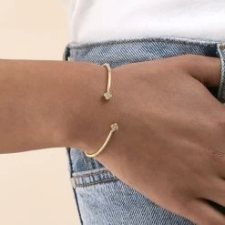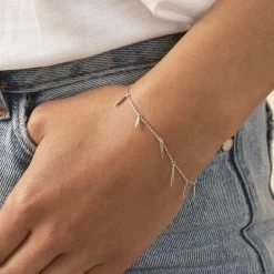 Bracelet souple en argent véritable orné d’une petite barre rigide pavée d’oxydes de zirconium
