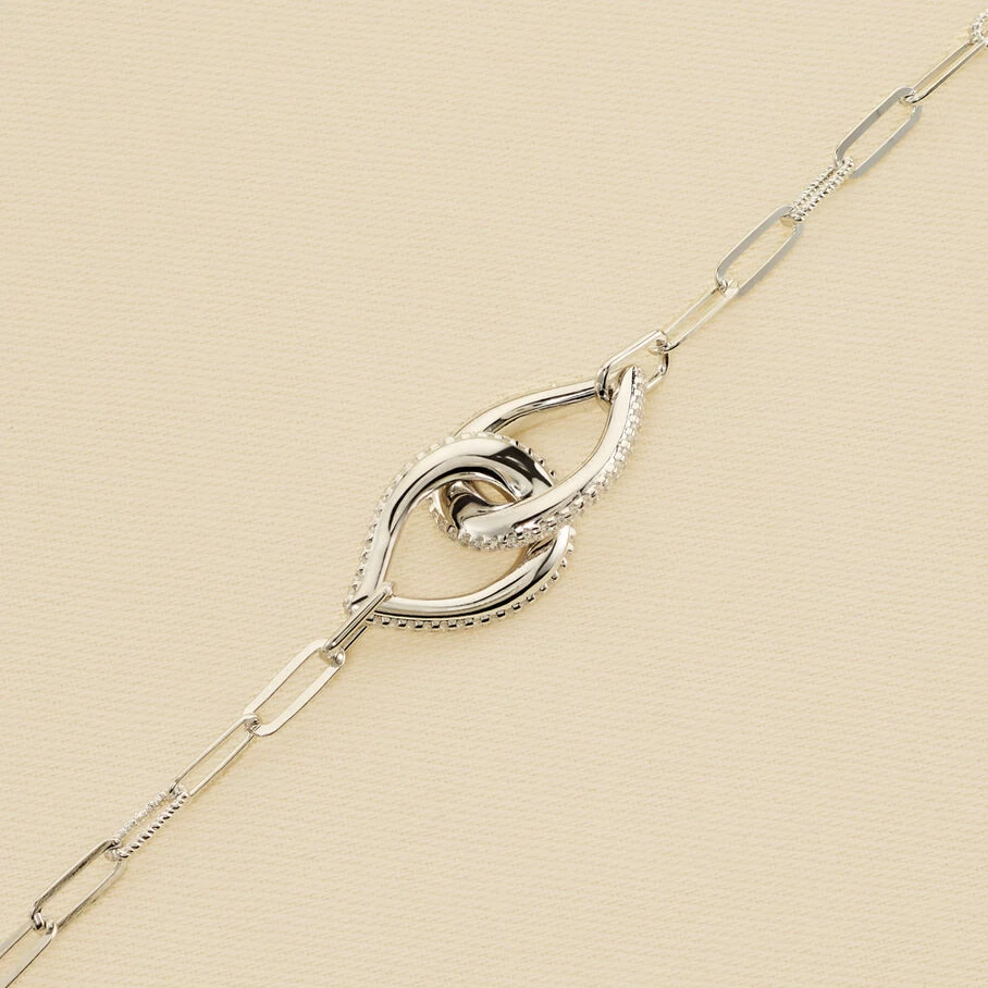 Bracelet, chaine maille rectangle, en argent 925/1000, dont le prendentif représente deux gouttes entrelacées et serties d’oxydes de zirconium sur la tranche extérieure