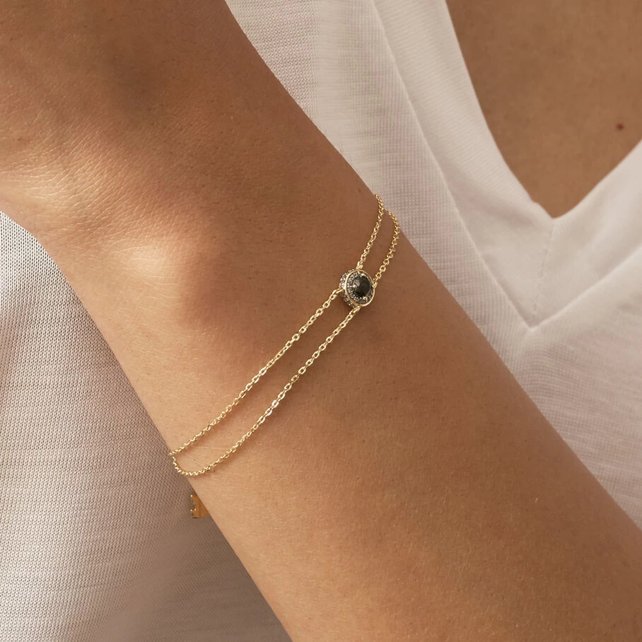 Bracelet chaine, en argent véritable doré 750/1000, avec un mini oxyde rond autour duquel sont micro sertis des oxydes de zirconium