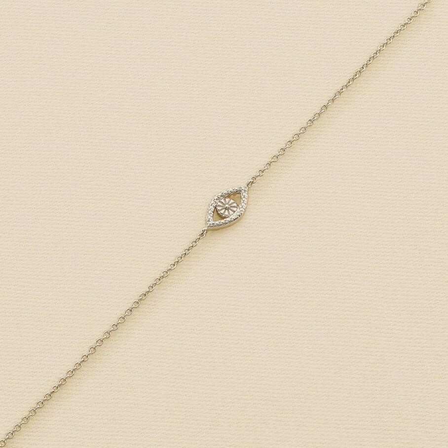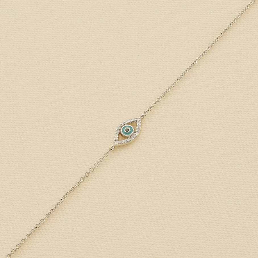 Bracelet, en argent véritable 925/1000, dont la chaine est ornée d’un petit œil turc. L’iris émaillé et le contour de l’œil serti d’oxydes de zirconium apportent un vrai raffinement et éclat au produit!