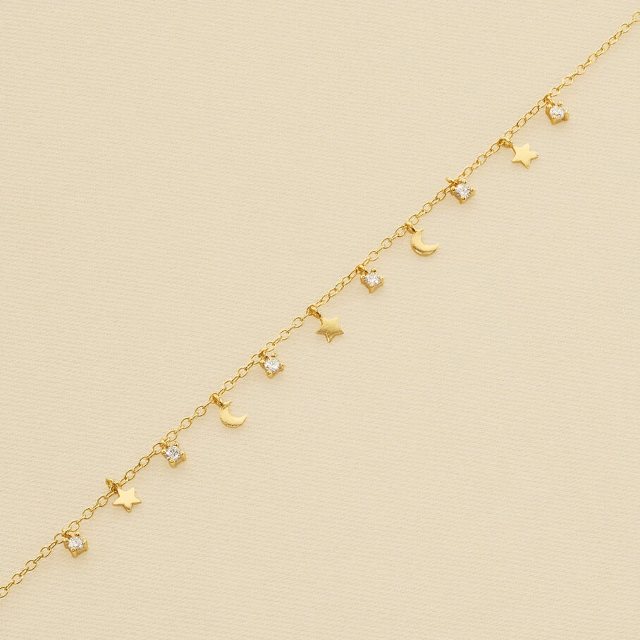 Bracelet, en argent véritable doré 750/1000, avec en pampille des petites lunes et des petites étoiles