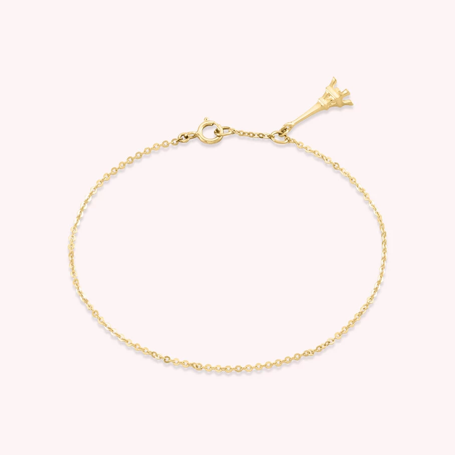 Bracelet en or, Mini tour Eiffel montée dur une chaîne fine.