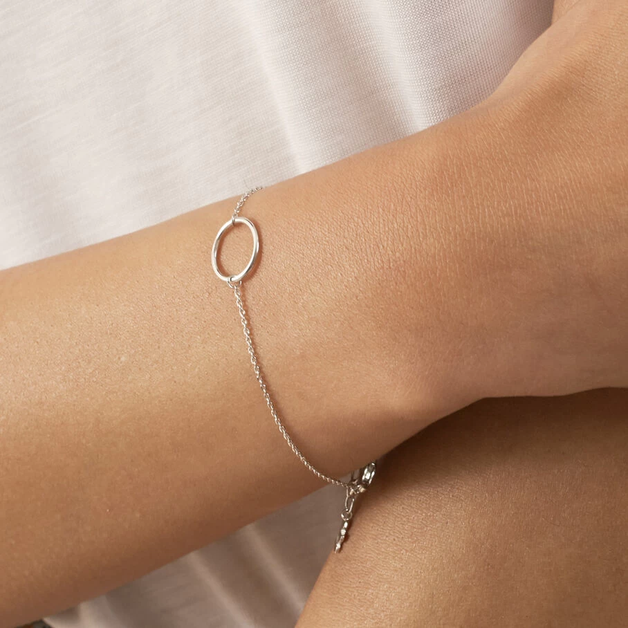 Bracelet, en argent véritable, avec un anneau évidé monté sur une chaine fine
