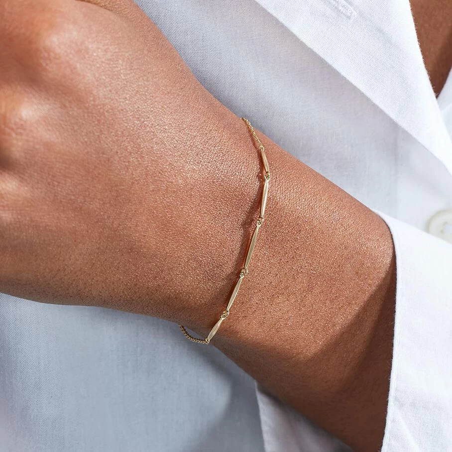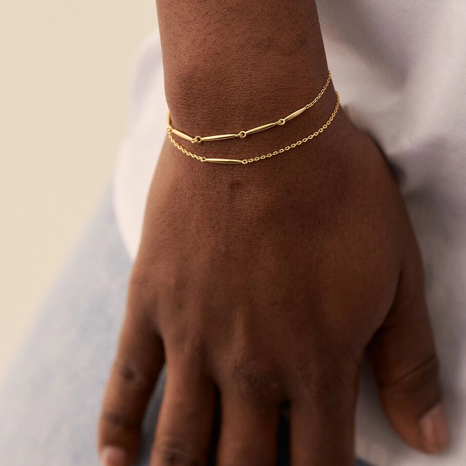 Bracelet chaine fine, en argent véritable 925/1000 et doré 750/1000, orné de cinq motifs rayons de soleil.