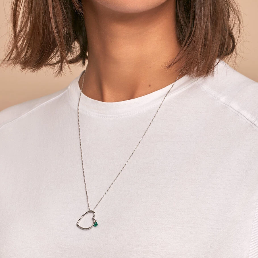 Collier mi-long, en argent véritable, avec un pendentif en forme de cœur au bout duquel un oxyde de zirconium perçé, en forme de cœur également, est en pampille
