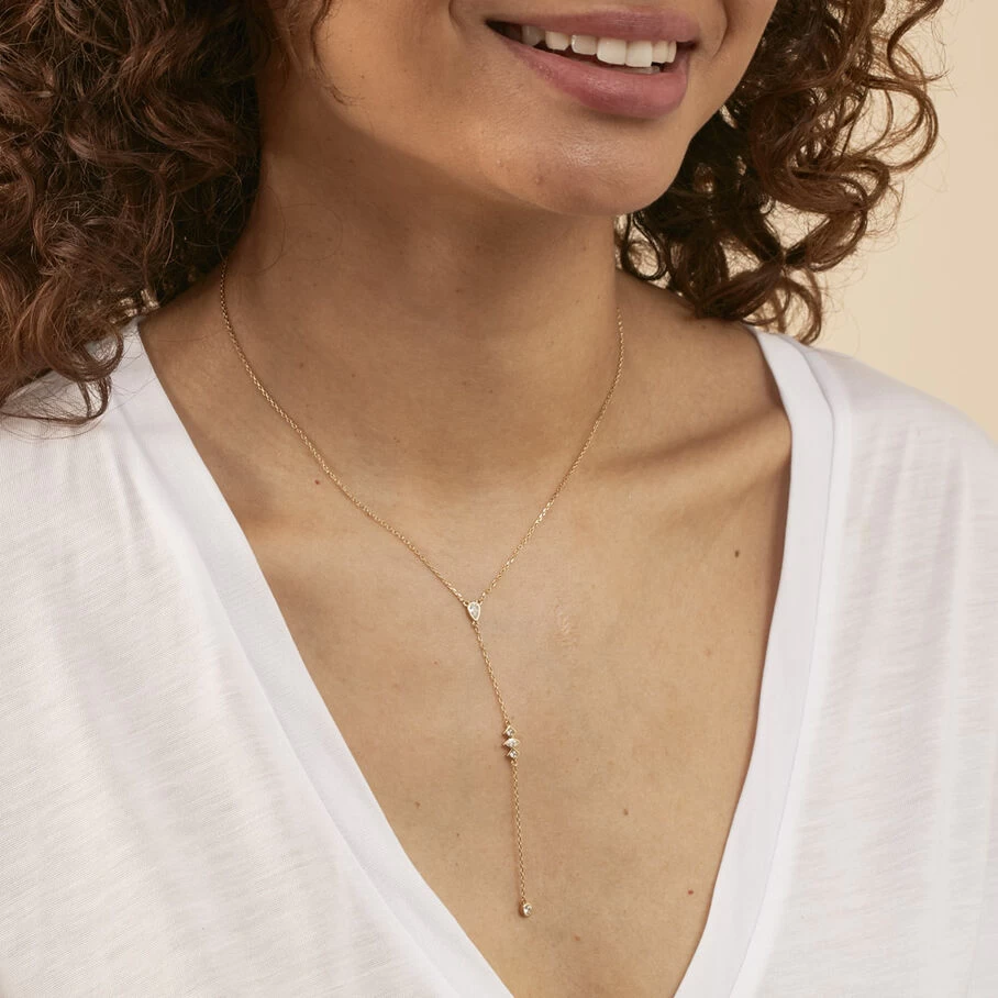 Collier Y en laiton doré 750/1000, avec des oxydes de zirconium gouttes sur chaine