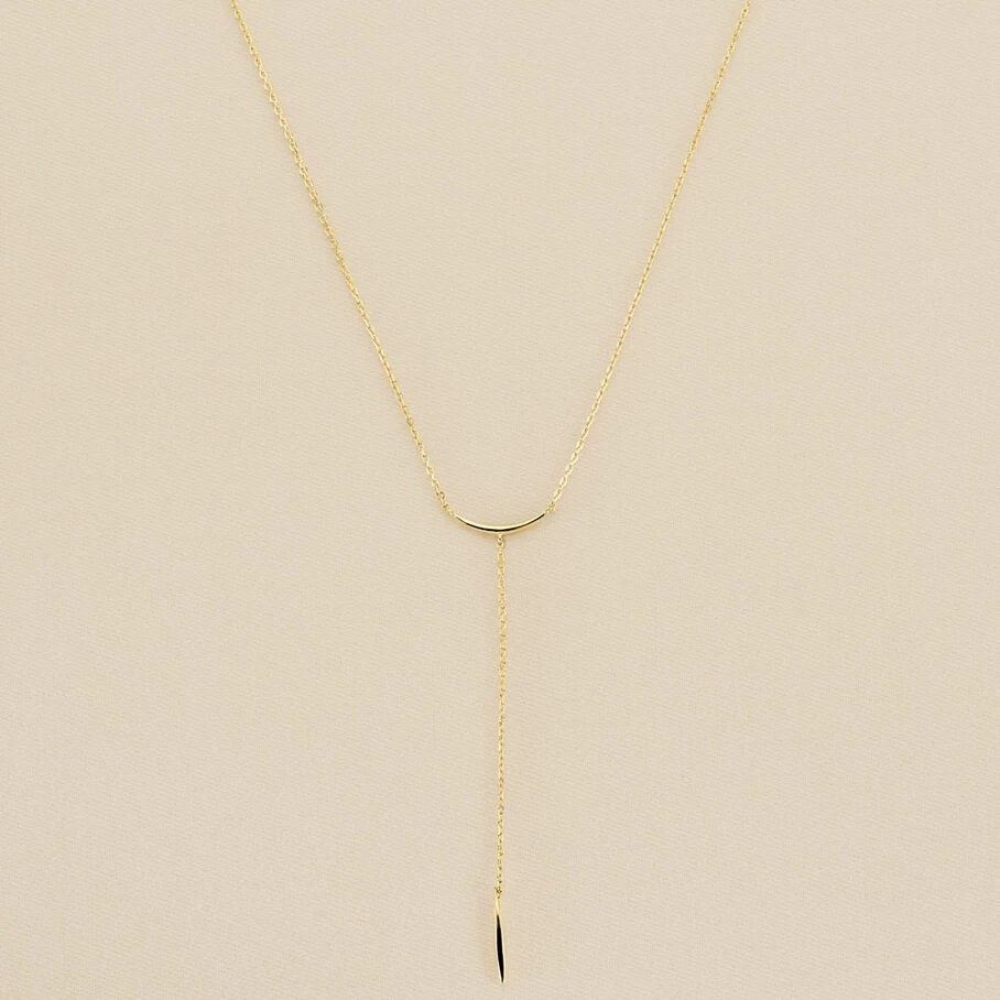 Collier Y sur chaine, en argent véritable 925/1000 et doré 750/1000, au pendentif en forme de rayon de soleil.