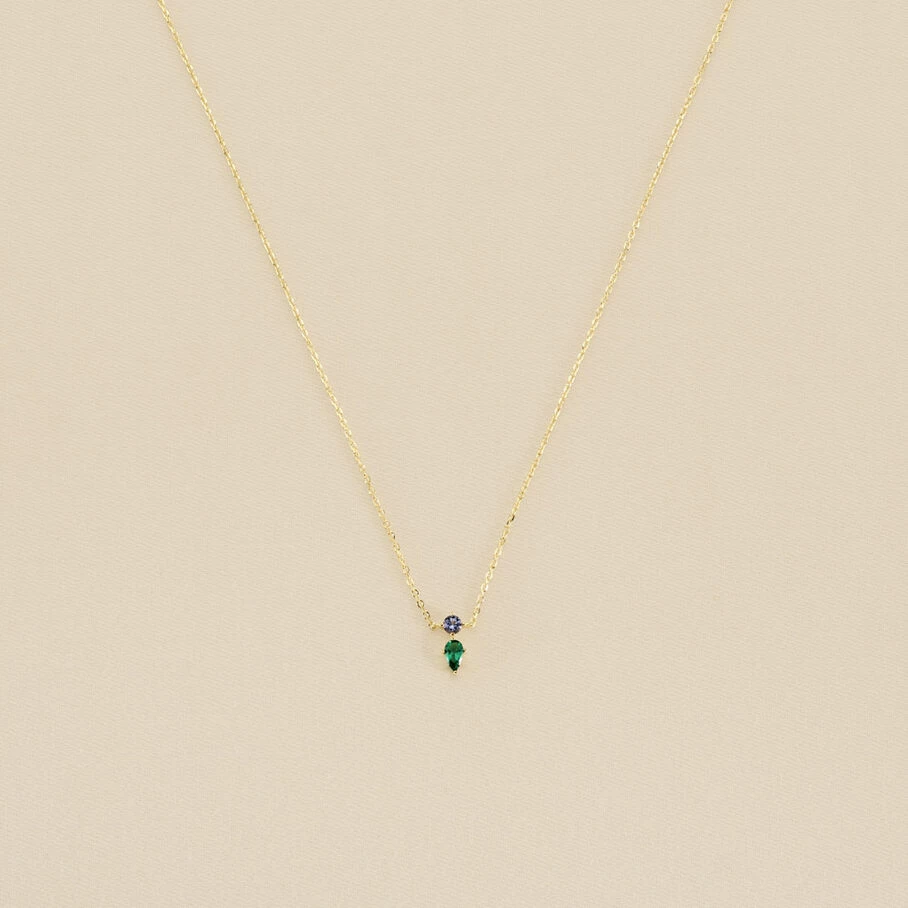 Collier court, en argent véritable doré 750/1000, avec des oxydes de zirconium multicolores en pendentif