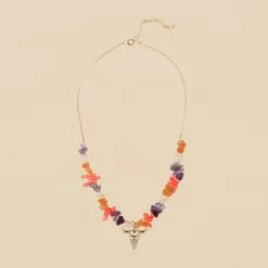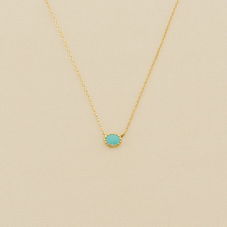 Collier court, en argent véritable 925/1000 et doré 750/1000, orné d’un pendentif monté d’une pierre fine d’un côté et émaillé de l’aute côté. La torsade, véritable signature de la marque, est apportée en touche notamment sur la bordure du pendentif! Un collier au double porté pour accorder à son humeur et à ses tenues!