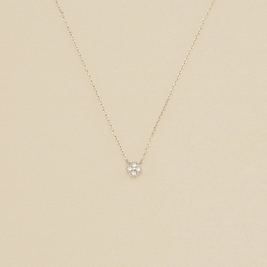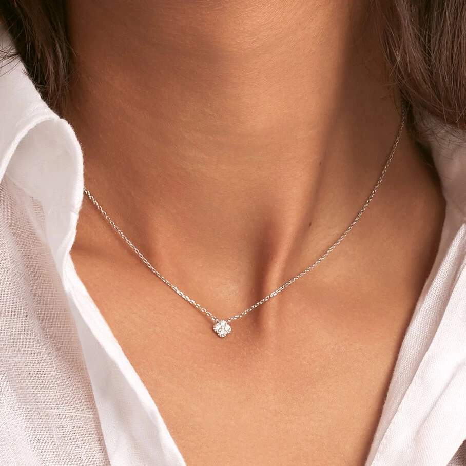 Collier, en argent véritable, avec un pendentif en forme de fleur dont les pétales sont des oxydes de zirconium et dont le pourtour est finement réalisé avec un graineti