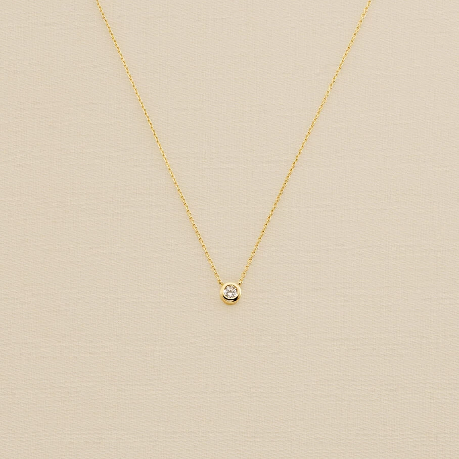 Collier court en argent véritable doré 750/1000, orné d’un oxyde de zirconium serti clos