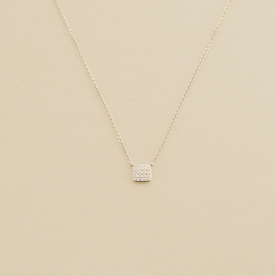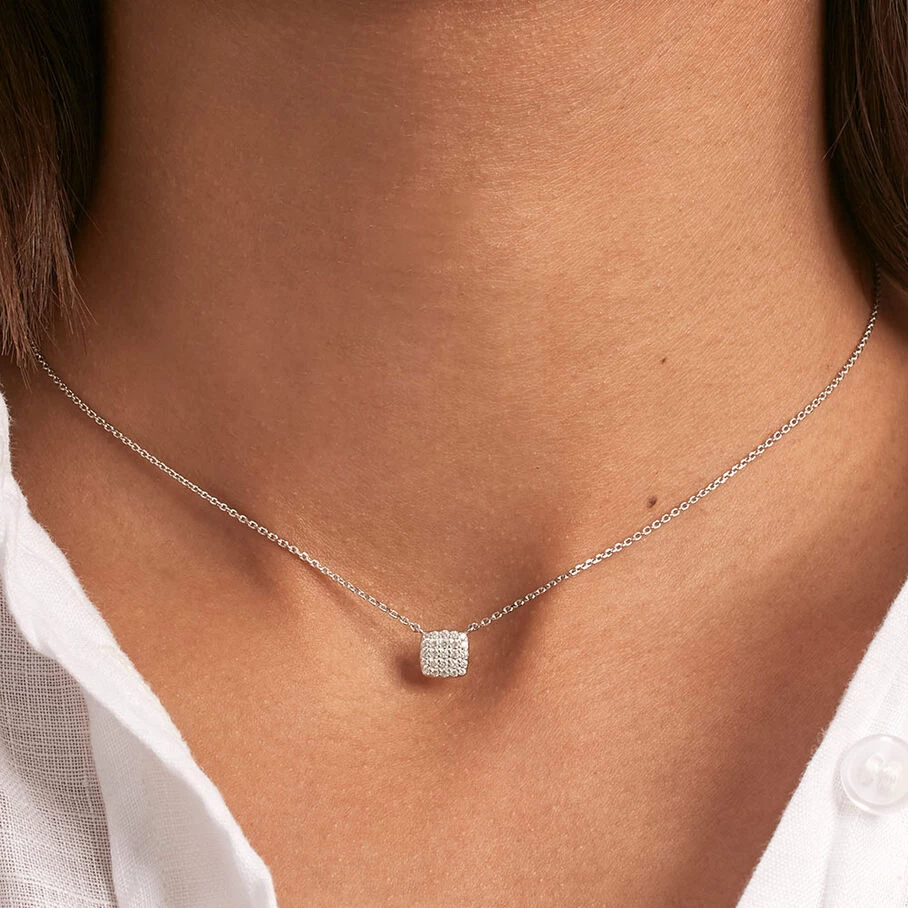 Collier court, en argent véritable, avec un pendentif en forme de coussin serti d’oxydes de zirconium