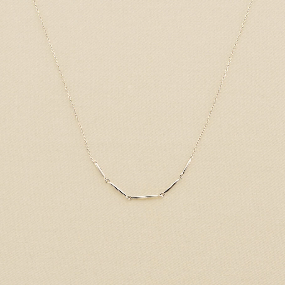 Collier chaine fine, en argent véritable 925/1000, orné de cinq pampilles rayonnantes.
