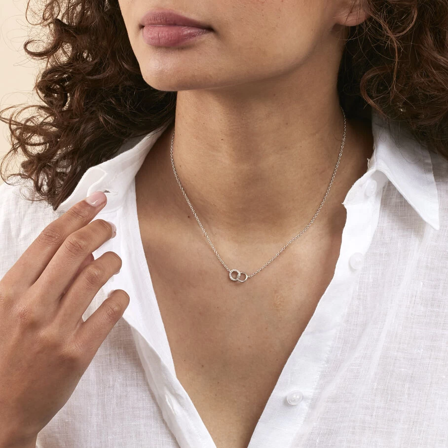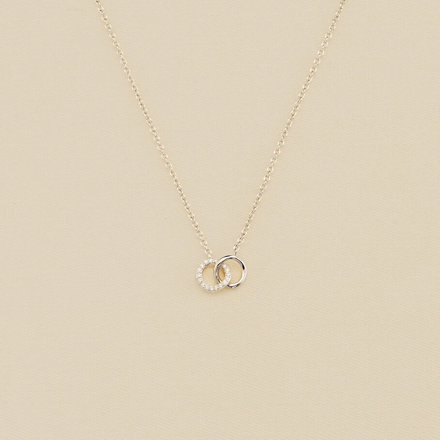 Collier court en argent véritable orné de deux anneaux entrelacés dont un pavé d’oxydes de zirconium