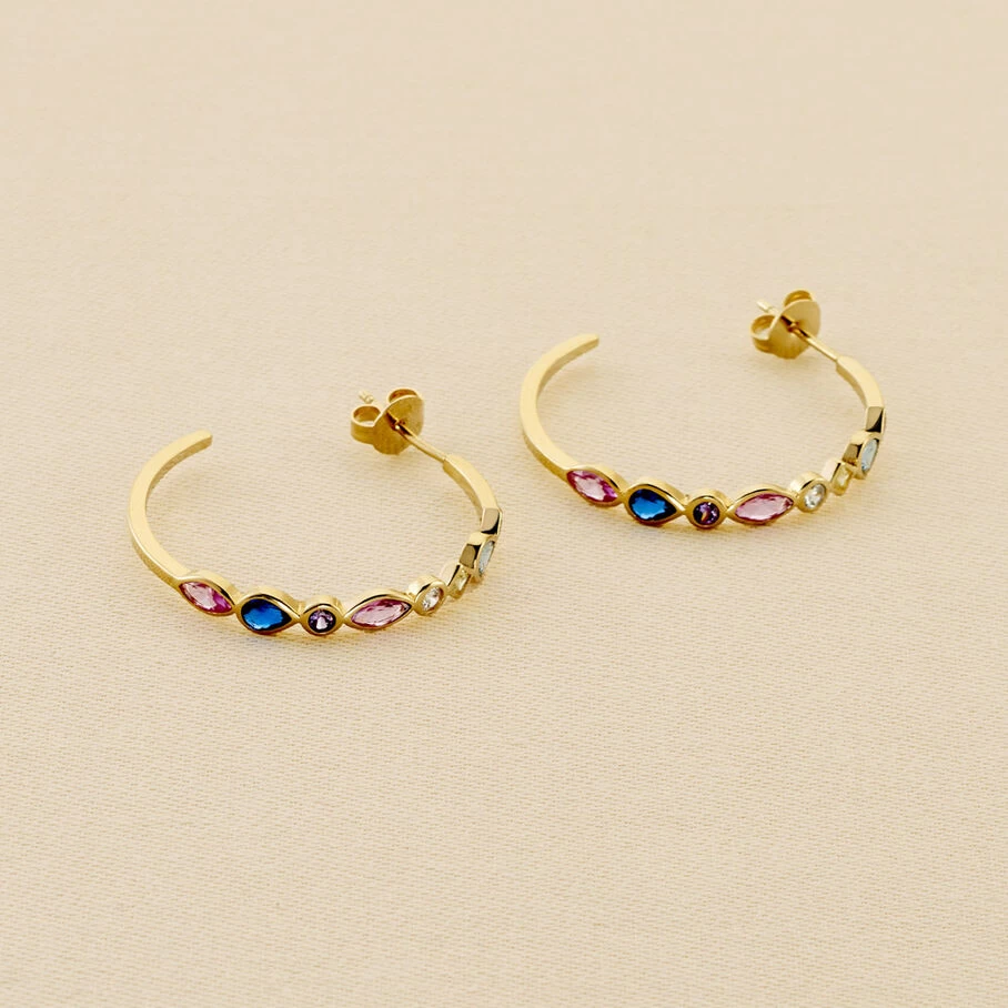 Créoles en laiton doré 750/1000 avec des oxydes de zirconium de différentes formes
