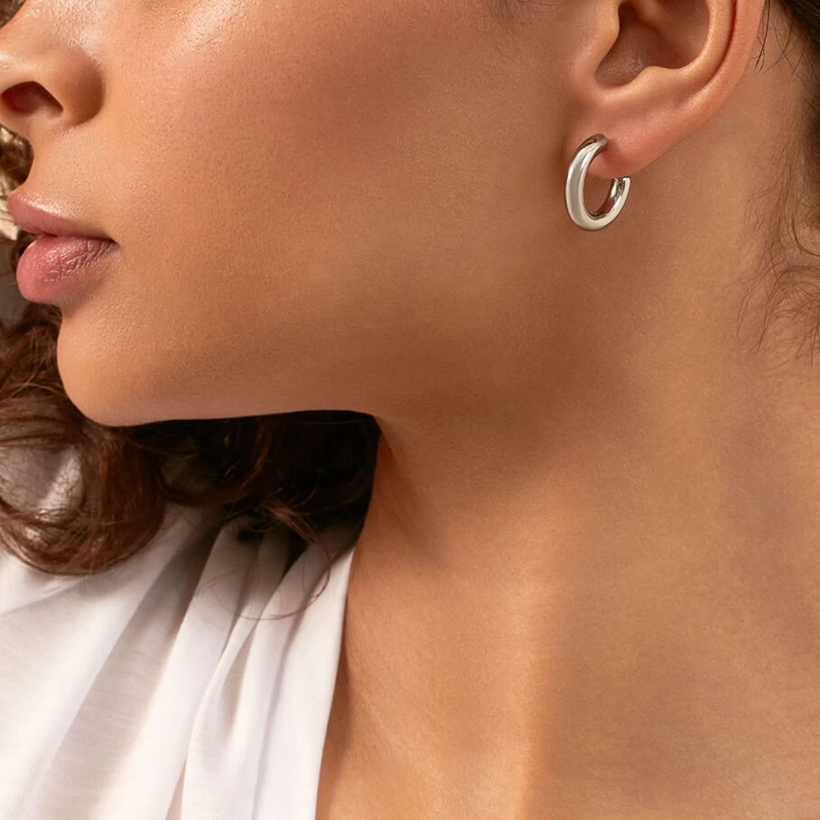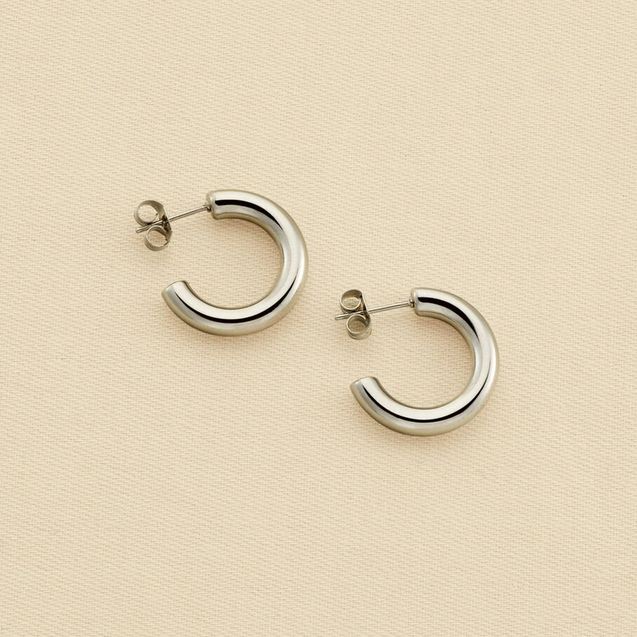 Boucles d’oreilles créoles en acier inoxidable, fil rond épais avec un fini brillant de 20 mm de diamètre