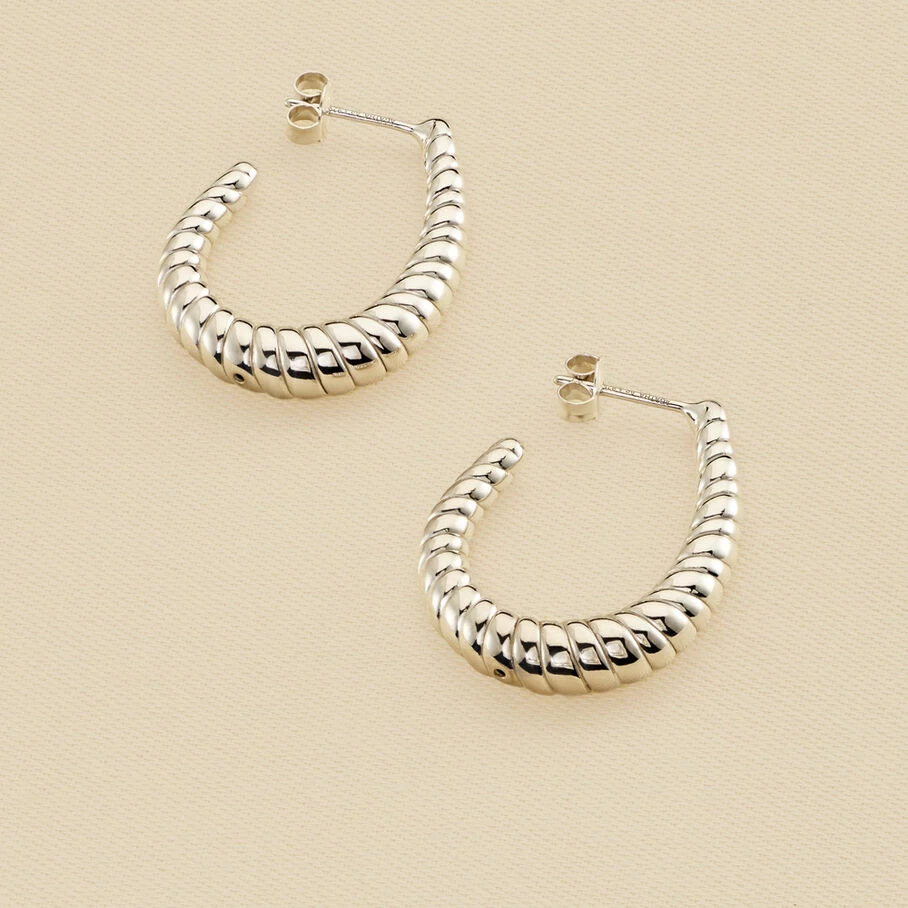 Créoles, en argent véritable, en forme de goutte et dont le fil est torsadé