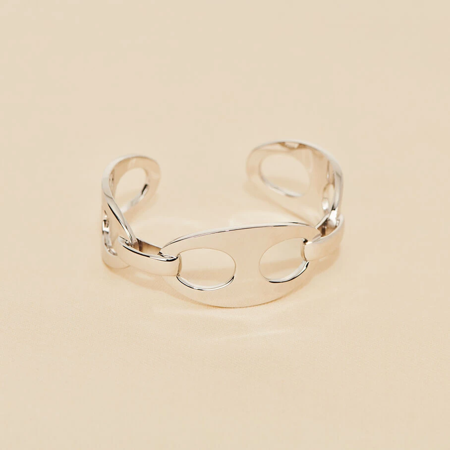 Jonc en argent véritable avec maillons rigides en forme de grains de café