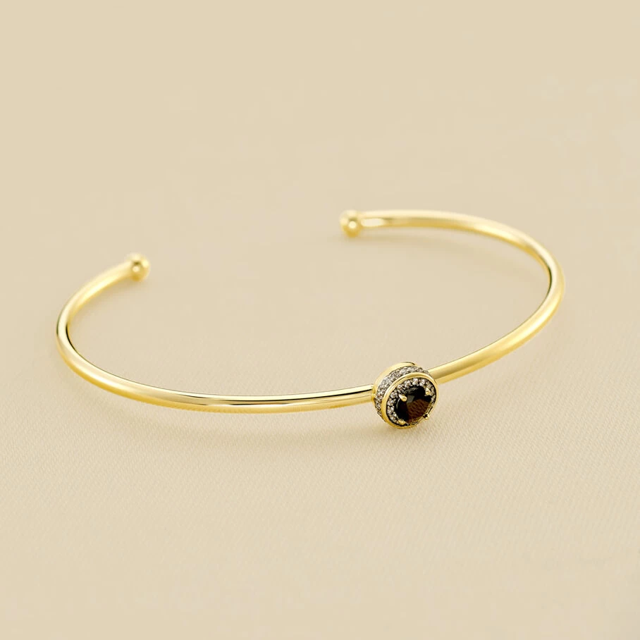 Jonc, en argent véritable doré 750/1000, avec un mini oxyde rond autour duquel sont micro sertis des oxydes de zirconium