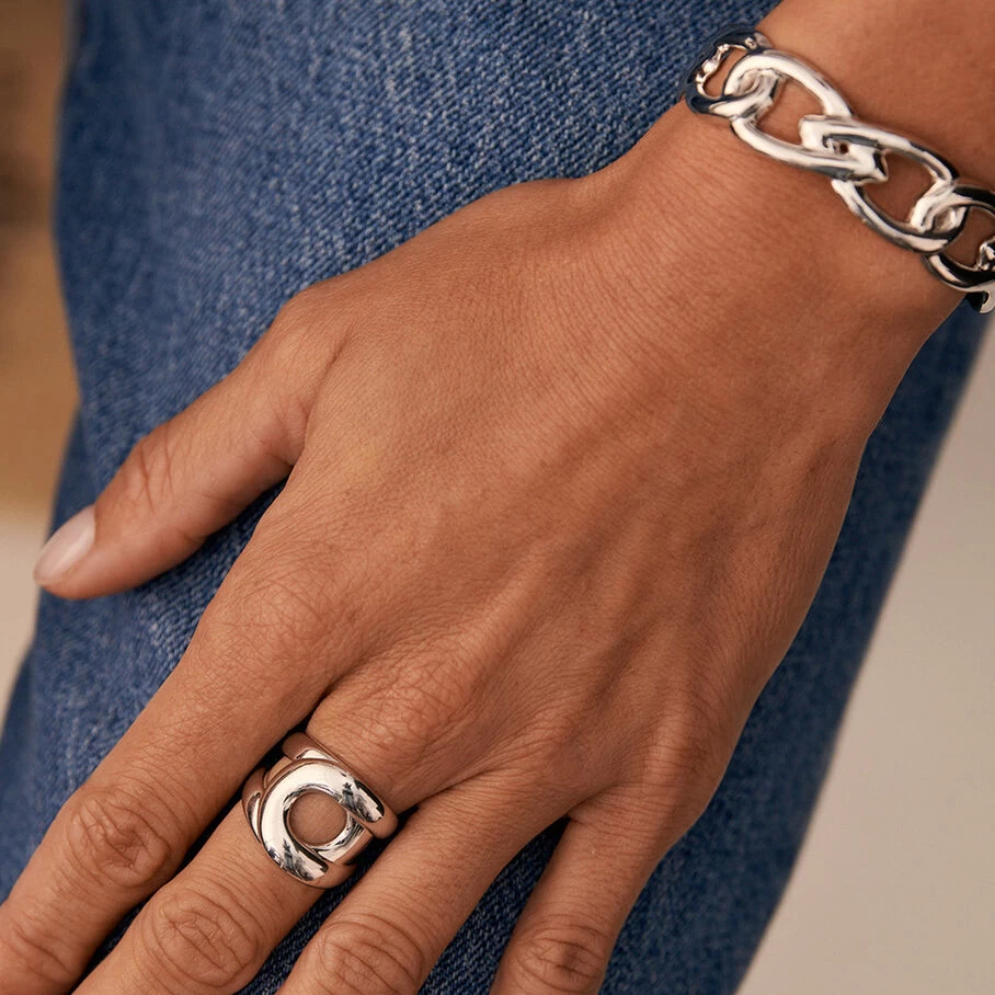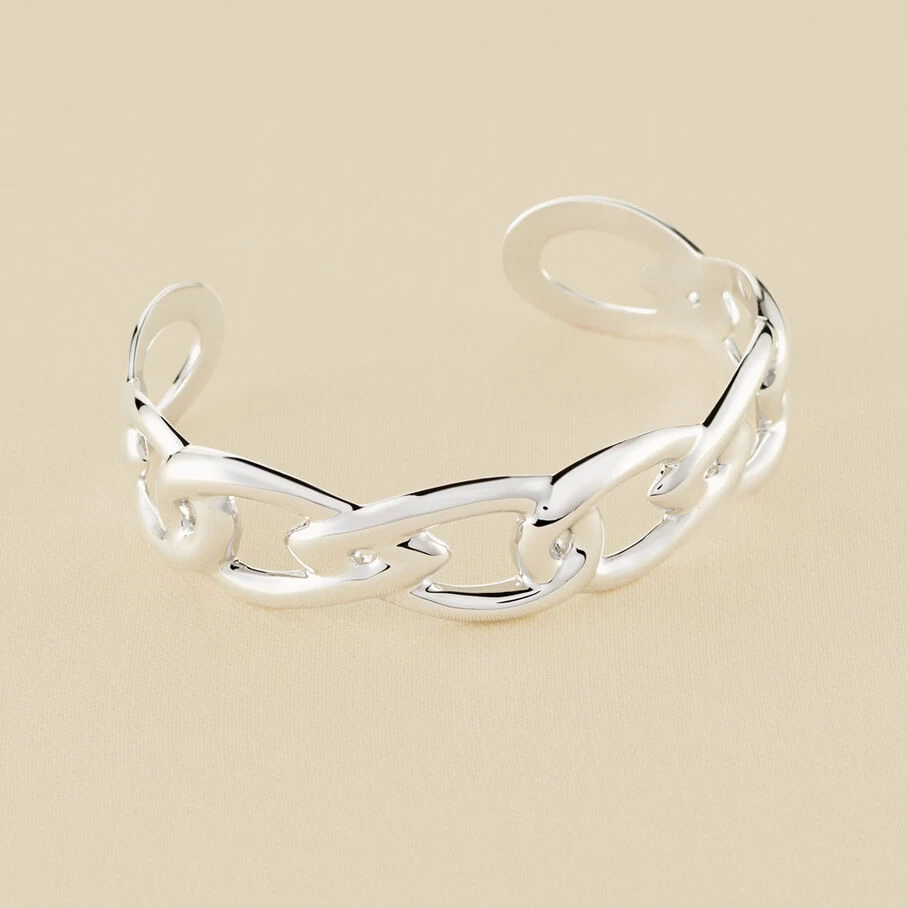 Manchette en argent véritable avec un jeu de maillons entrelacés.