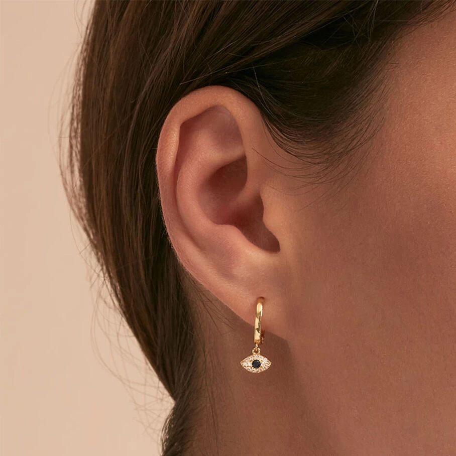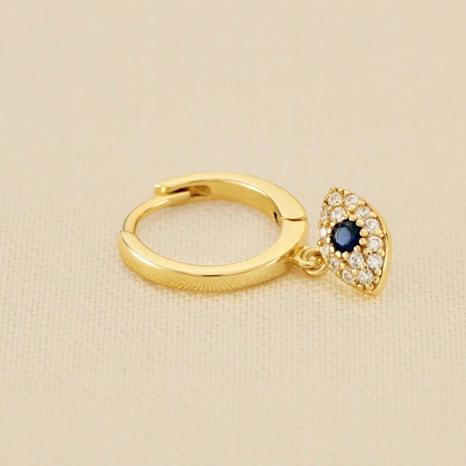Mini créole, oeil turc pavé d’oxydes de zirconium, en argent doré 750/1000. A l’unité pour miuex les mixer et les accumuler.