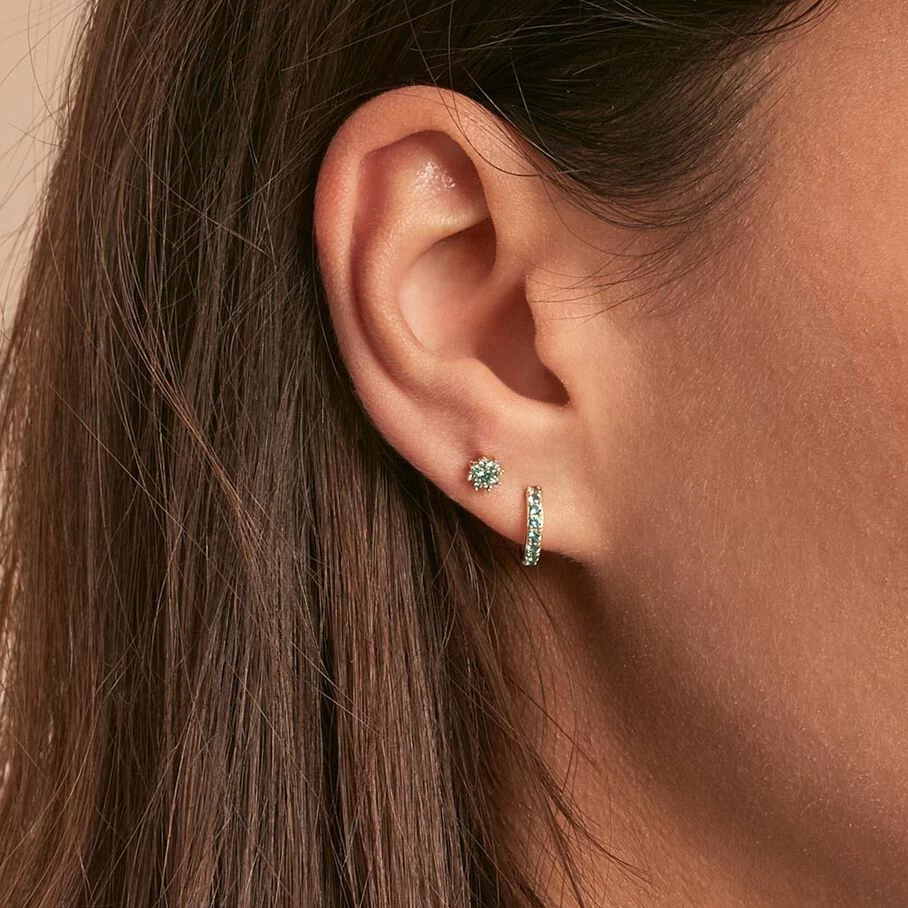 Créole pavée d’oxydes de zirconium, en argent doré 750/1000. A l’unité pour mieux les mixer et les accumuler.