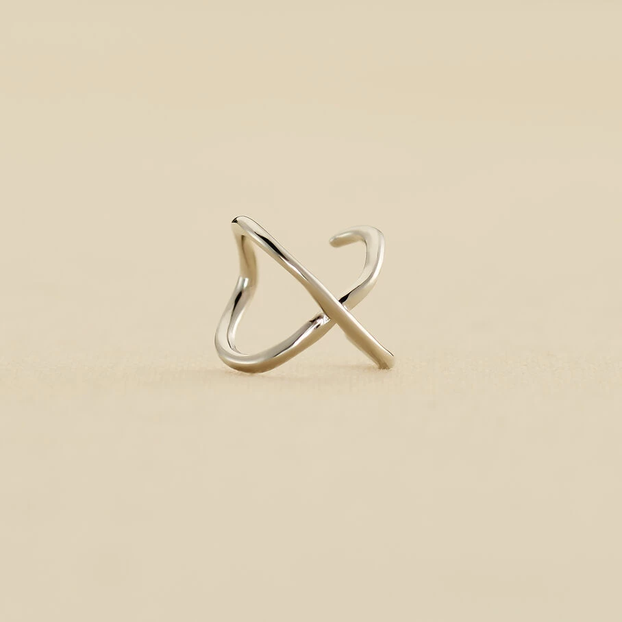 Faux piercing en argent véritable, bague d’oreille en fils croisés. A l’unité, pour mieux les mixer et les accumuler.