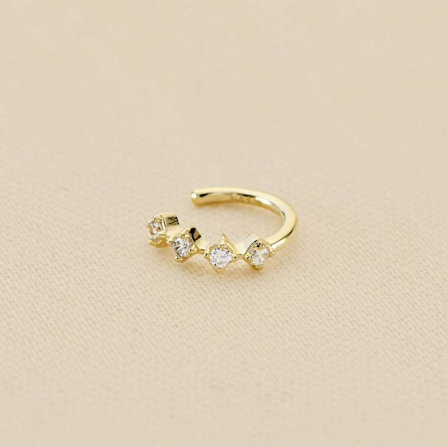 Faux piercing, en argent doré 750/1000, anneau avec des oxydes de zirconium en losange. A l’unité.