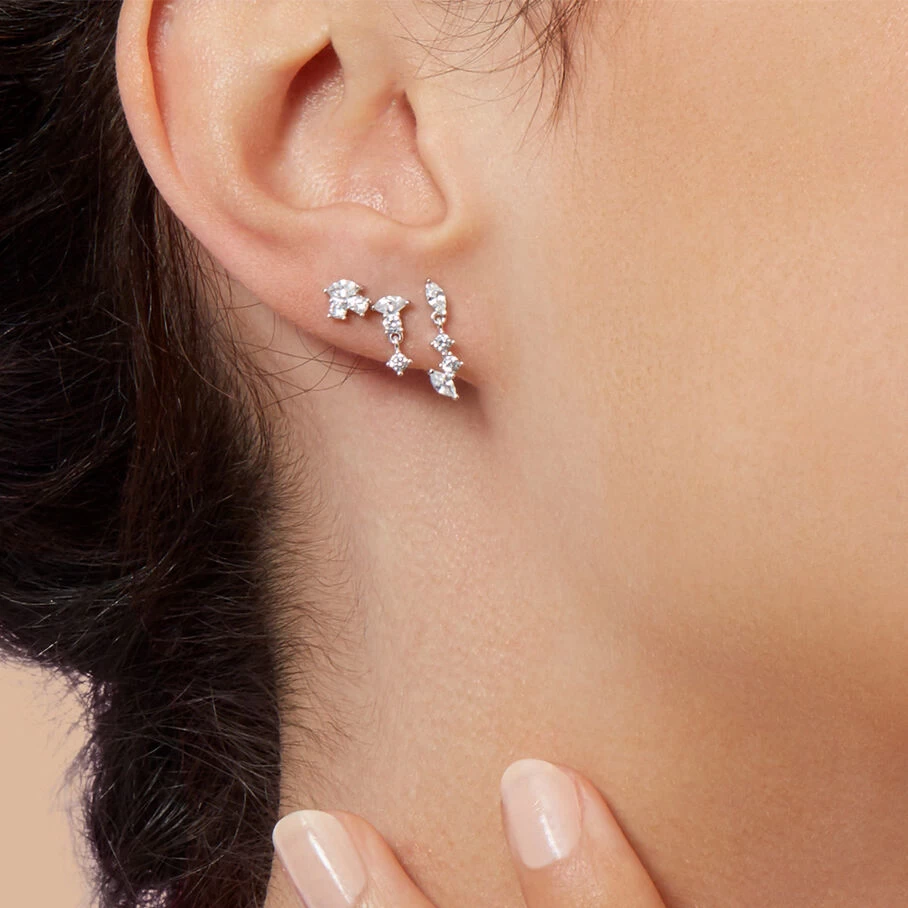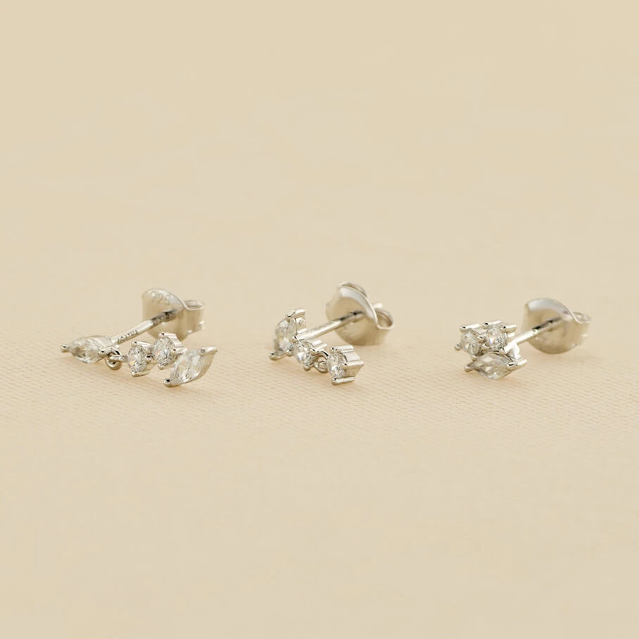 Set de 3 boucles d’oreilles puces, en argent 925, oxydes de ziconium de différentes formes sertis