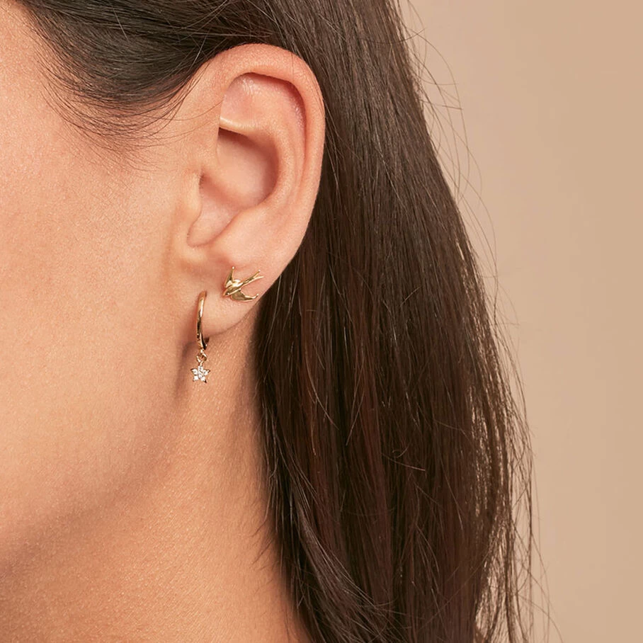 Boucle d’oreille puce, petit oiseau, en argenté doré 750/1000. A l’unité pour mieux les mixer et les accumuler