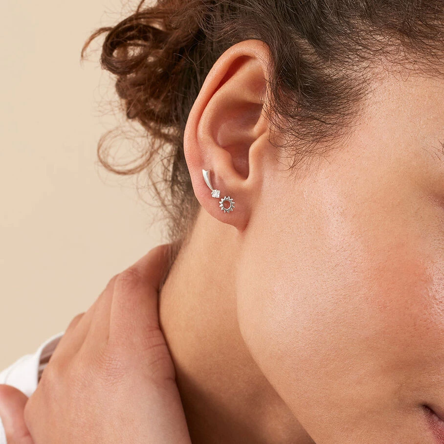Boucle d’oreille puce en argent véritable motif soleil. A l’unité, pour mieux les mixer et les accumuler.