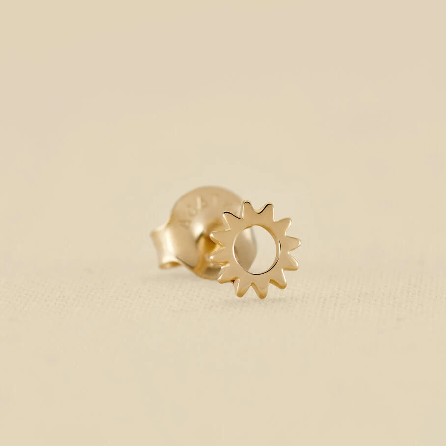 Boucle d’oreille en argent véritable doré à l’or fin en forme de soleil. A l’unité, pour mieux les mixer et les accumuler.