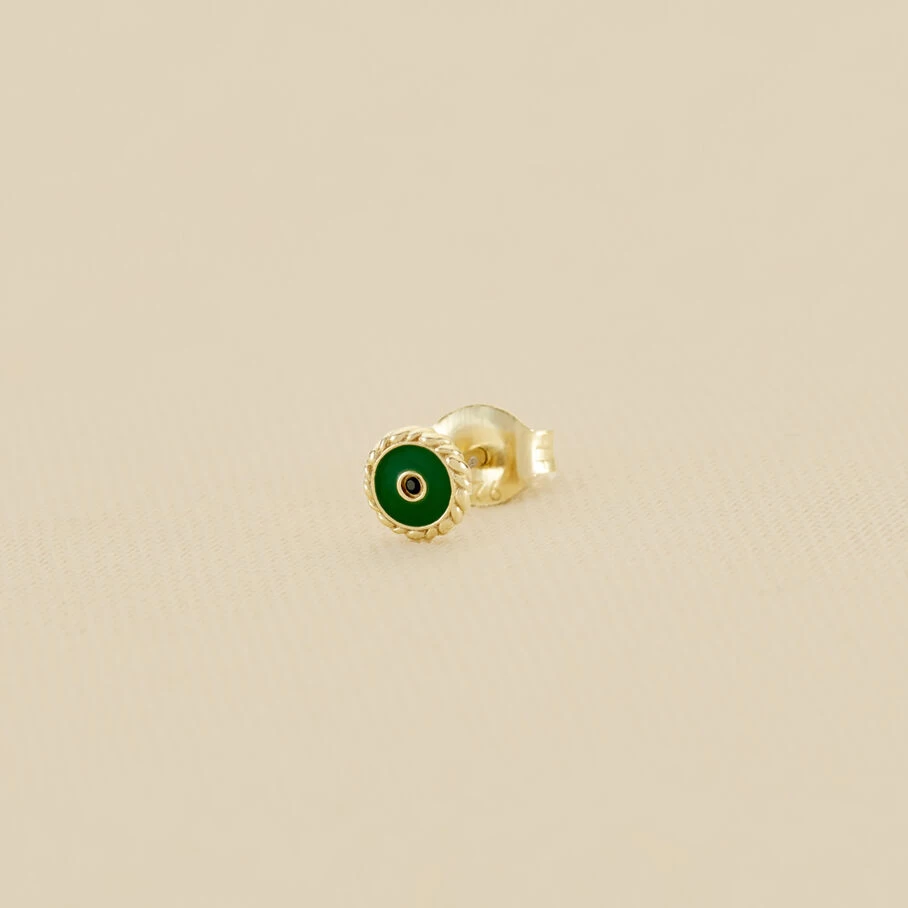 Boucle d’oreille puce à l’unité, en argent 925/1000 doré 750/1000, en forme d’œil turc. L’iris émaillé et le contour de l’œil serti d’oxydes de zirconium apportent un vrai raffinement et éclat au produit!
