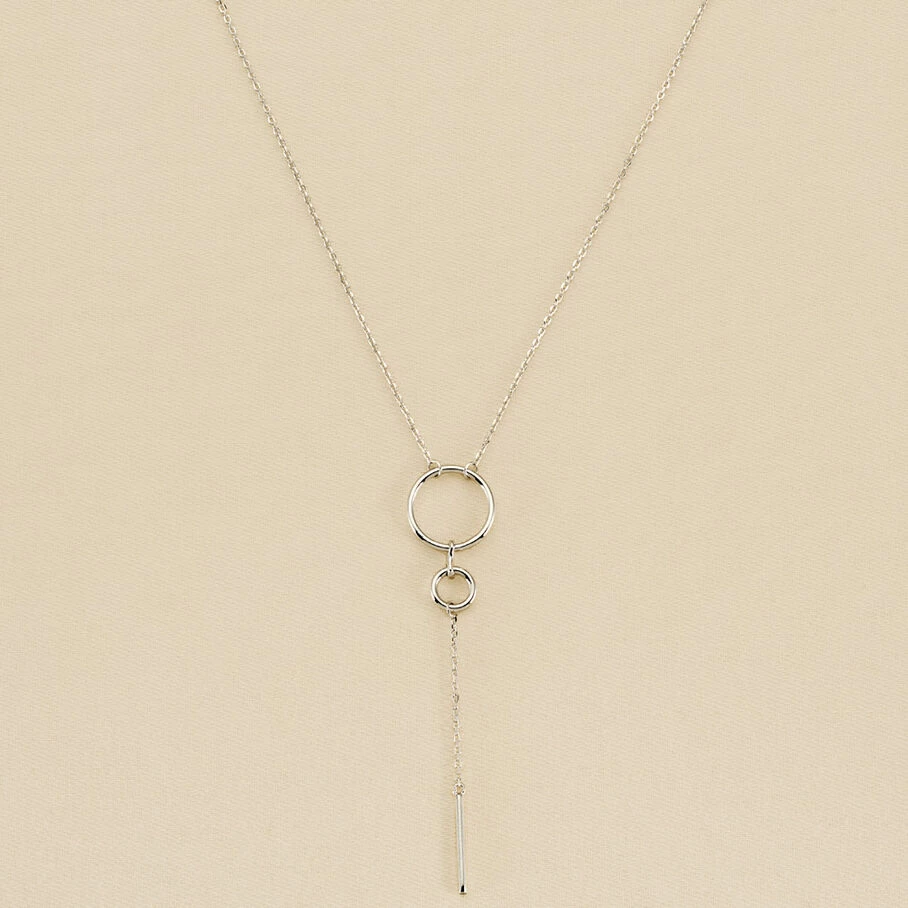 Collier Y, en argent véritable, avec une fine chaîne sur laquelle sont montés deux anneaux évidés de différentes tailles
